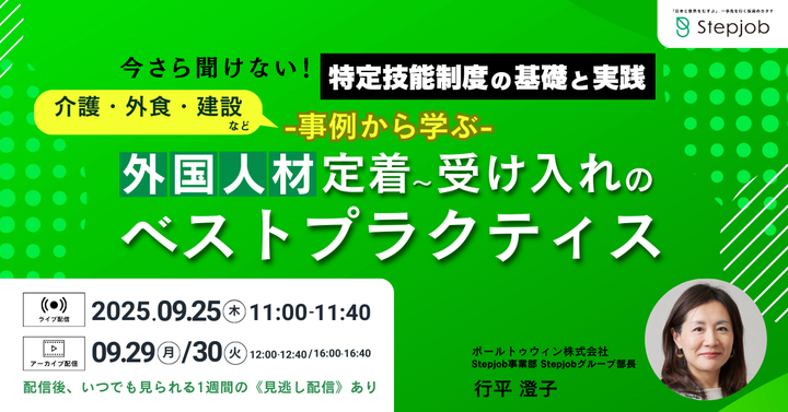 サービス・ライフサイクルの課題解決を支援するポールトゥウィン株式会社(本社:愛知県名古屋市、代表取締役 CEO:橘 鉄平、代表取締役COO:志村 和昭、以下「ポールトゥウィン」)は、2025年9月25日(木)にウェビナー「今さら聞けない特定技能制度の基礎と実践 ― 事例から学ぶ外国人材受け入れ〜定着のベストプラクティス」を開催いたします。