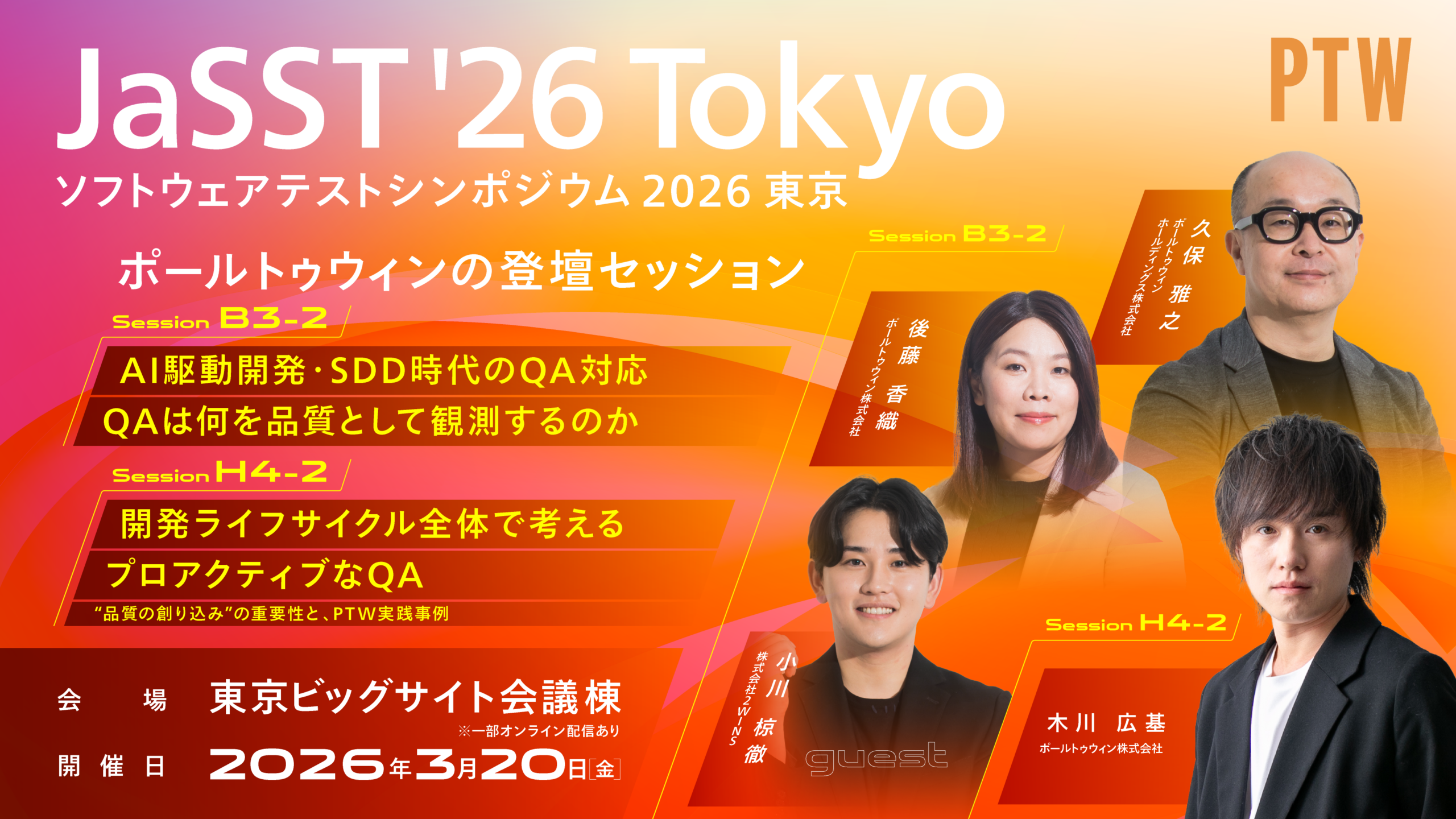 ポールトゥウィン、国内最大級のソフトウェアテスト技術カンファレンス「JaSST’26 Tokyo」に登壇 ―AI駆動開発時代のQAをテーマに2セッションを講演―